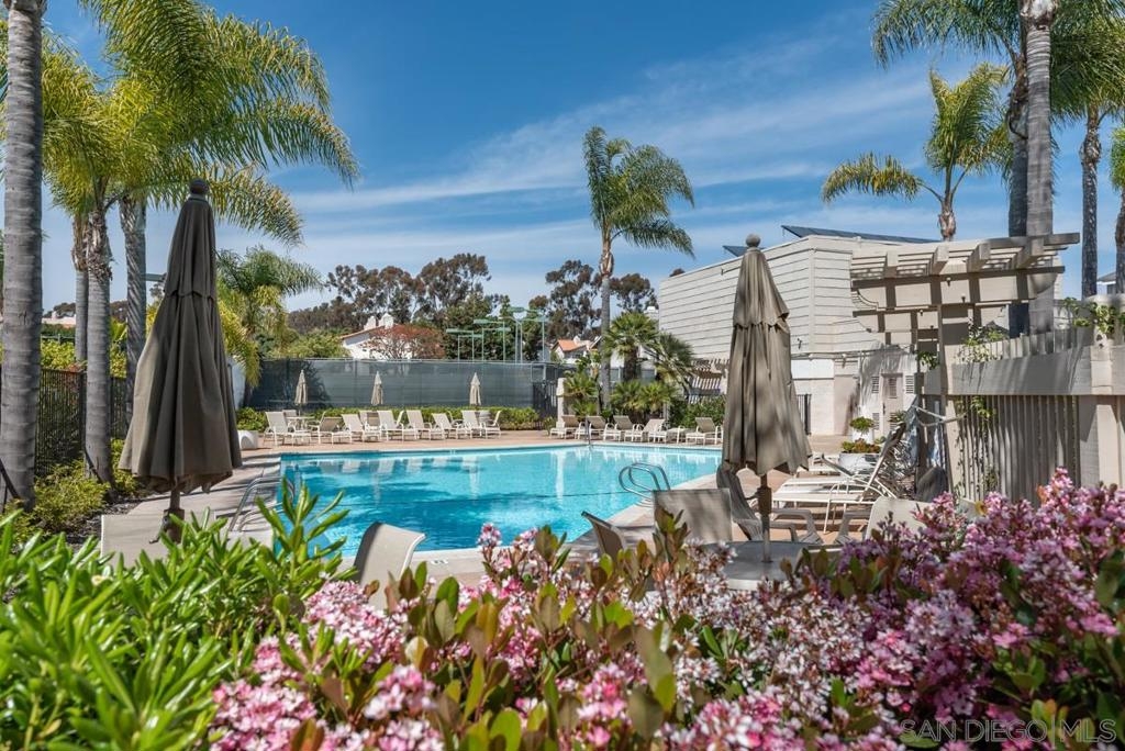 Top floor townhome style condo in fantastic UTC location. Spacious floorplan with updates & upgrades. Newer neutral paint and carpet, soaring vaulted ceilings, fireplace in living room, ceiling fans in every room. Large Master Suite with beautifully remodeled bathroom. New dual vanities, mirrors & light. Extra large closet. Private balcony. Super sized patio off BR2/front entry. In unit laundry. Private garage w overhead storage. Complex offers swimming pool, spa, & tennis courts. Perfect Golden Triangle location near to shopping, dining, UCSD, VA, and 5 & 52 freeways. Equipment: Garage Door Opener, Range/Oven Other Fees: 0 Sewer: Sewer Connected Topography: LL