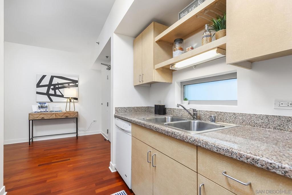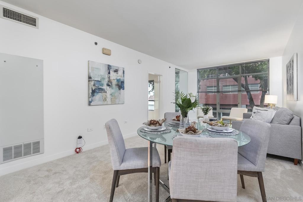 Your first home doesn't have to be complicated — Aqua Vista makes it easy. At the lowest price point in the complex, with a motivated owner ready to move quickly, this 766-square-foot one-bedroom, one-bath condo is one of the most approachable entry points into San Diego real estate you'll find. Built in 2004 and well-maintained, it's a smart, low-stress first purchase. Located in the heart of Downtown San Diego, right next to Little Italy, you get the best of both worlds: a quiet, comfortable retreat that puts cafés, restaurants, the waterfront, and weekend farmers markets just a short walk away. Inside, the open floor plan connects your living, dining, and kitchen spaces in a way that feels natural and easy to furnish — no awkward layouts or wasted space. The galley kitchen comes with a refrigerator, microwave, and dishwasher already in place. In-unit laundry means no trips to a shared laundry room. Community amenities are a genuine bonus: a rooftop pool and spa, fitness center, barbecue areas, and valet garage parking for one car are all included. Air conditioning keeps things comfortable year-round. If you're ready to stop renting and start building equity in a city you love, Aqua Vista is a fantastic place to start. Don't let this one pass you by!