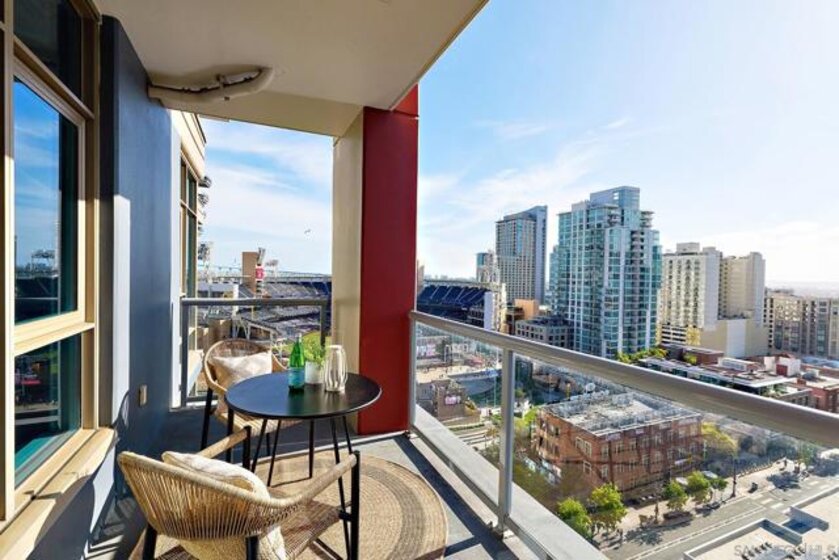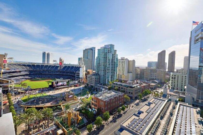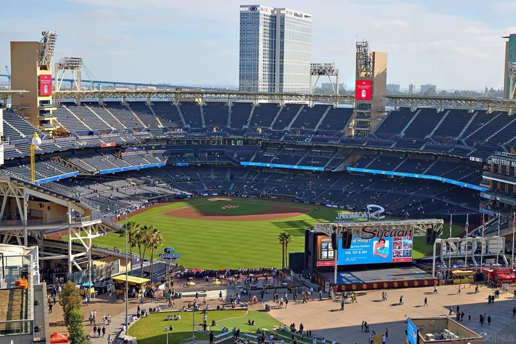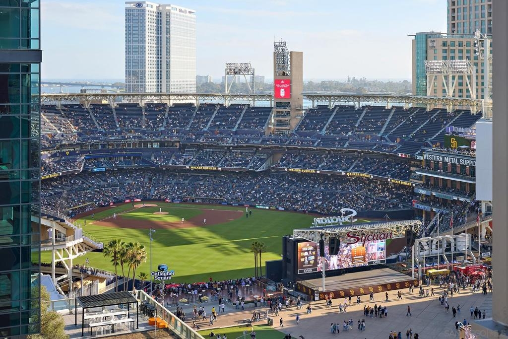 Batter Up! Step into urban luxury on the 13th floor of Diamond Terrace, offering breathtaking views of Petco Park and Gallagher Square from your private balcony—perfect for catching games, concerts, or stunning sunsets. This sleekly remodeled home features modern finishes, high ceilings, in-unit laundry, gated assigned parking, and spacious storage locker. Exclusive access to the rooftop terrace with BBQ, dining areas, fitness center and lounge, all just steps from downtown’s vibrant dining and entertainment scene. Just in time for baseball season, this stunning 13th-floor corner unit at Diamond Terrace is a home run! With JAW-DROPPING views of Petco Park, Gallagher Square, City, Coronado Bridge, and even the islands, you’ll have front-row seats to all the action—right from your private balcony. Enjoy the best of urban living with the convenience of an in-unit washer/dryer, gated assigned parking, a generously sized storage locker, and spacious rooms featuring soaring ceilings. A stylish top-to-bottom designer remodel! Common area rooftop terrace, with dining areas and BBQ, as well as a fitness center and lounge. The ideal location for easy exploration of endless dining and entertainment options that downtown has to offer. "Park at the Park" across the street is perfect for your pup. VA Approved,1 pet allowed under 100lbs, 2nd pet possible with HOA approval. Check out the virtual tour!