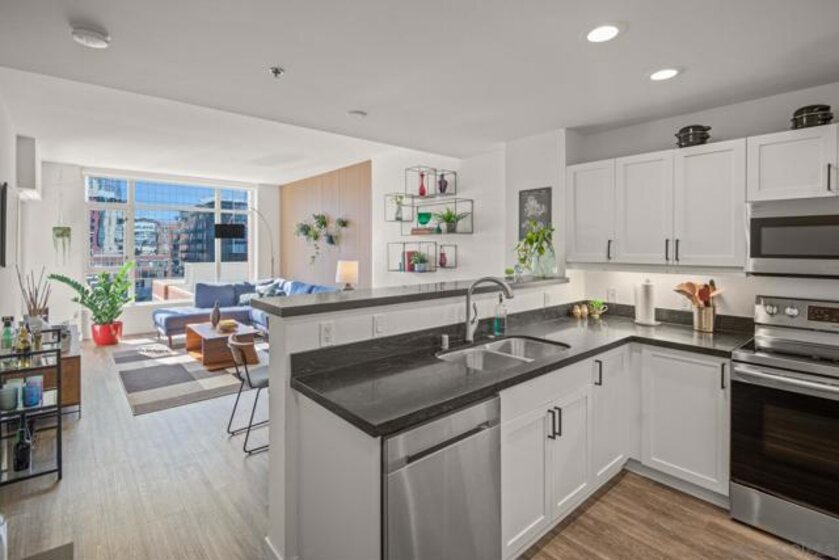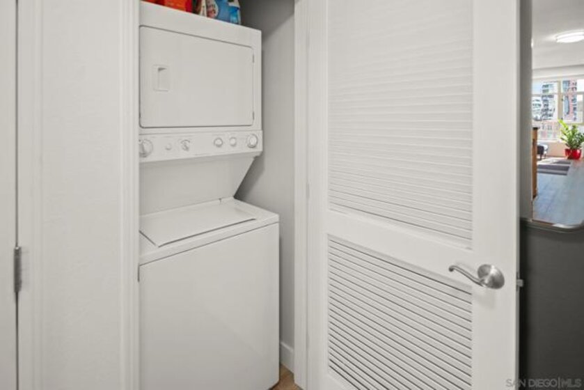 Modern, bright and meticulously maintained 1-bedroom condo with balcony at Diamond Park Terrace, located in the heart of East Village, with amazing views into Petco Park. Move-in ready and offered turn-key, this stylish home presents a bright open floor plan with wood flooring, a beautifully updated kitchen featuring ample cabinetry, counter space, and stainless appliances. The spacious bedroom showcases downtown views, a walk-in closet with custom shelving, and a roomy bath with dual access. The home also features an art frame TV and an in-wall safe for added security and convenience. Enjoy one secure gated parking space plus a separate storage unit. Community amenities include a rooftop terrace with spectacular views into Petco Park’s “Baseball Diamond,” fitness center, lounge, and BBQ areas. Live steps from Petco Park, the Harbor and Marina, the Gaslamp Quarter, Little Italy, and world-class dining, shopping, and entertainment. A unique opportunity to own a turn-key property in a prime location.