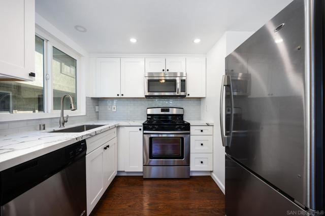 Discover this beautifully updated 2 bedroom, 2.5 bath end-unit, offering privacy with no neighbors above or below. Step into a bright, modern space featuring a newly remodeled kitchen with a stunning waterfall-edge countertop, sleek laminate flooring throughout, and a brand-new AC unit for year-round comfort. Enjoy the convenience of an in-unit laundry area and an attached 2-car garage. Perfectly located just minutes from SDSU and only a block from local restaurants, coffee shops, and grocery stores, this home combines style, comfort, and an unbeatable location.