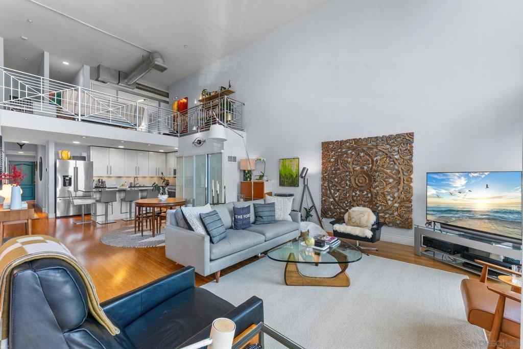 Experience iconic urban living in this stunning loft-style residence in the heart of University Heights. This contemporary home features soaring two-story ceilings, dramatic floor-to-ceiling windows, and an open-concept layout that floods the space with natural light. The modern kitchen offers sleek cabinetry, stone countertops, stainless steel appliances, and a generous center island—ideal for entertaining. The upper-level primary suite serves as a private retreat, featuring a stylish fireplace, ample closet space, and flexibility for a serene bedroom sanctuary. A second bedroom is conveniently located on the main level and includes an en-suite full bath, making it perfect for guests, multigenerational living, or a private home office. The upper-level loft provides additional versatility and can be used as a workspace, guest area, or creative studio. Additional highlights include solar panels, hardwood flooring, recessed lighting, central HVAC, in-unit laundry, and secure parking. Just steps from Park Boulevard, enjoy walkable access to popular restaurants, cafés, and shops, with Balboa Park, downtown San Diego, and major freeways only minutes away—this is modern urban living at its finest.