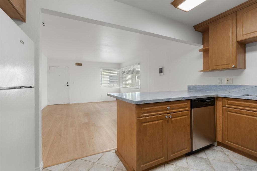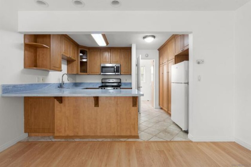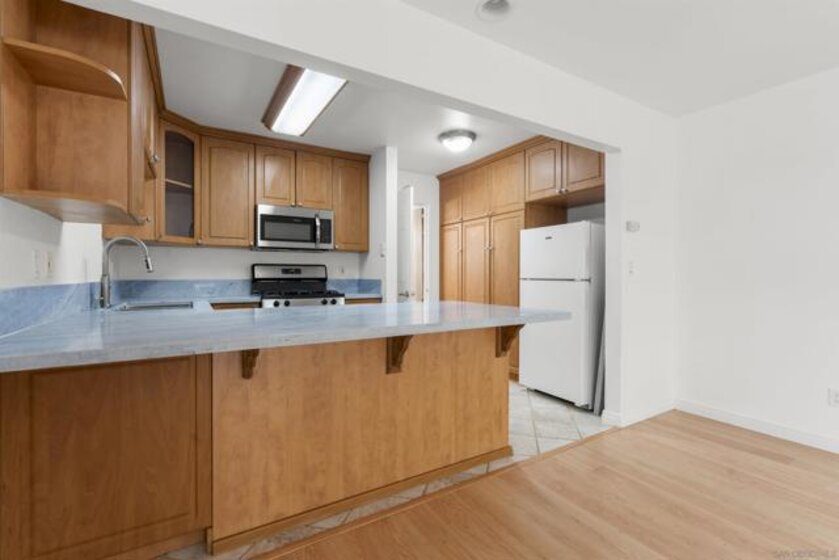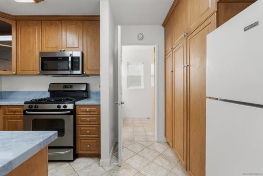 LOCATION, LOCATION, LOCATION! Only half a block away from the glistening shores of Ocean Beach sits this ground-floor corner studio in Sand & Sea Villas, offering coastal living at its finest. Bursting with charm and fresh updates, this corner, single-level retreat boasts sleek matching countertops in the kitchen and bathroom, a cozy breakfast bar, and brand-new stainless steel appliances, including a dishwasher, stove, and microwave - perfect for having a quick bite after a sun-soaked day by the waves. The bathroom has been freshly painted and thoughtfully upgraded with closet shelving to maximize storage space. Within the secure, gated community, you’ll discover lush tropical landscaping, a BBQ area for casual outdoor dining, bike storage, a private storage locker, and a convenient laundry room. And here’s the kicker - this unit includes its own designated covered parking space in the back alley, a rare luxury this close to the ocean. With the beach practically at your doorstep and Ocean Beach’s eclectic mix of cafes, boutiques, and local hotspots just a short stroll away, this is your chance to dive into the ultimate coastal lifestyle. Make this seaside sanctuary your own today!