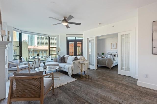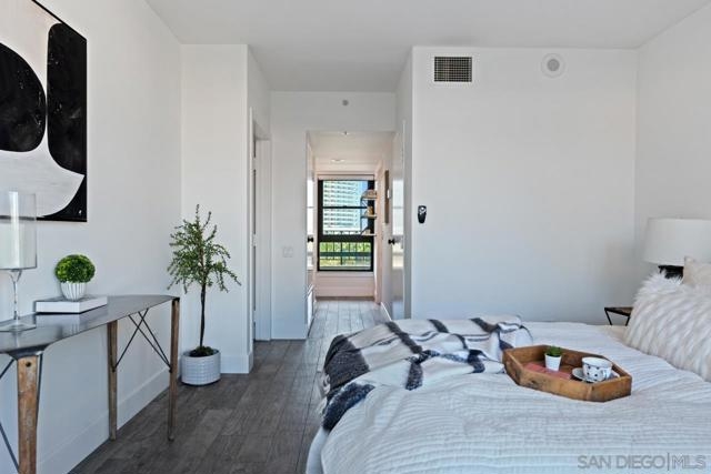 Welcome to luxury high-rise living in the heart of the Marina District. Located on the TOP FLOOR in the sought-after "The Link" building at CityFront Terrace, this spacious 2-bedroom, 2-bathroom residence offers comfort, style, and functionality. Enjoy a thoughtfully designed split-bedroom layout with tiled flooring throughout, stainless steel appliances, and generous closet space. Two outdoor seating areas and an oversized balcony provide the perfect spots to relax or entertain while taking in city views. Don't miss this opportunity to live in one of Downtown San Diego’s premier full-service communities. CityFront Terrace offers some of the finest amenity offerings in all of downtown San Diego living. With a location moments from the heart of the city, but far enough away to keep privacy and seclusion a daily standard; life here can truly feel like living. Within this downtown landmark is the award- winning Urban Canyon, a secluded garden overflowing with lush greenery, oak trees, rose bushes, and accented by a 90-foot-long waterfall creating a unique sanctuary of epic bliss. Featuring resort-style amenities including two community swimming pools (1 lap pool & 1 splash pool), jacuzzi, outdoor kitchen & barbecue area, sun deck, gazebo, fire pit, ping pong table, bicycle share program, ATM as well as a phenomenal social lounge complete with full kitchen, bar and state-of-the-art media electronics, presenting the perfect place for large scale entertaining and parties. The building’s 3,500 square foot fitness facility is outfitted with a full spectrum of strength and cardio equipment, aerobics room & men’s and women’s locker rooms and saunas. Also available for resident use is a state-of-the-art business center fully configured for conferences, printing, and computer usage. 24-hour lobby attendant and optional valet parking provide an extra measure of luxury that’s not typically seen in downtown San Diego.
