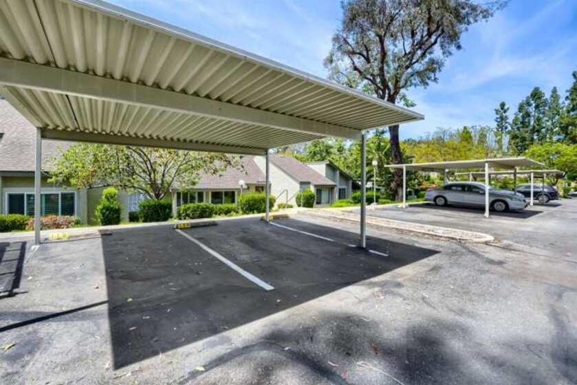 Very secluded and Spacious end unit townhome ranch style with no one above or below featuring new custom paint, newer laminated wood flooring, large living room with vaulted ceilings, newer dual pane windows and slider. Large Master bedroom with walk-in closet and large walk-in shower plus attached laundry room. Spacious Country kitchen w/access to the patio and the storage shed. Great location with canyon view and 2 assigned parking spaces. Access to the community pool, spa & tennis courts.