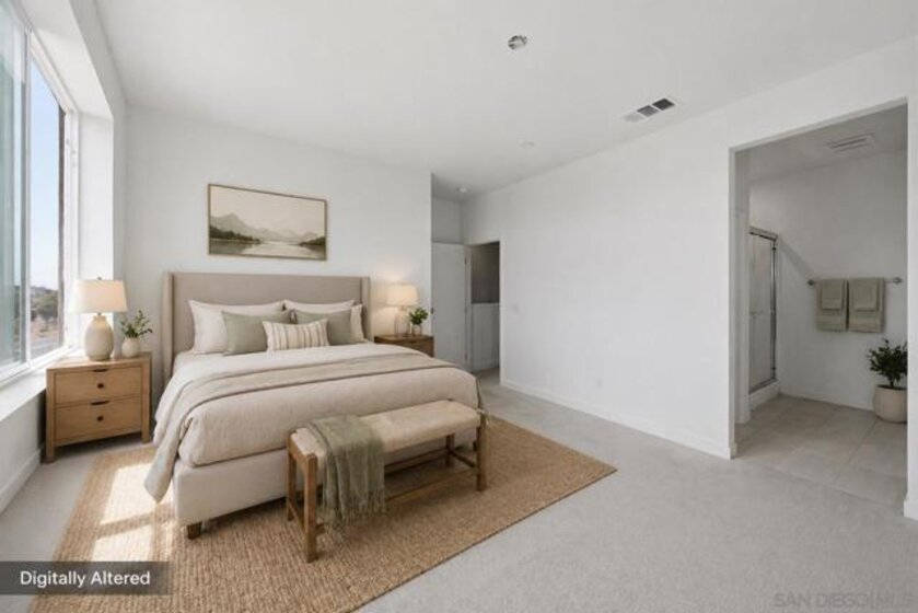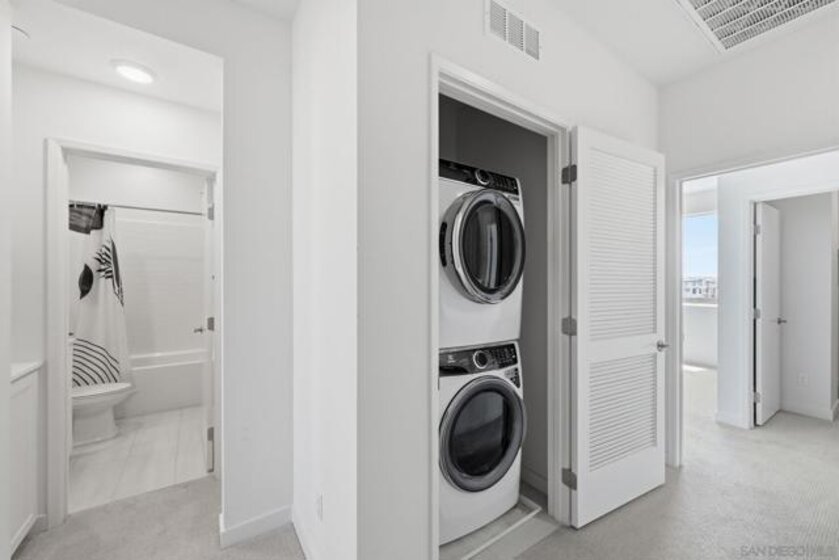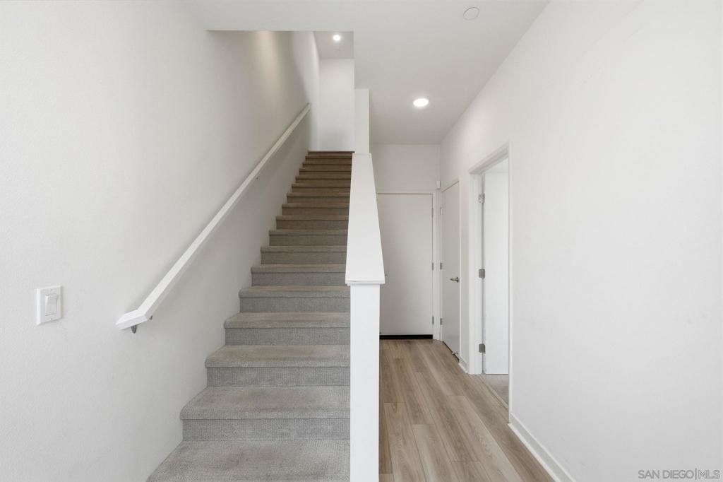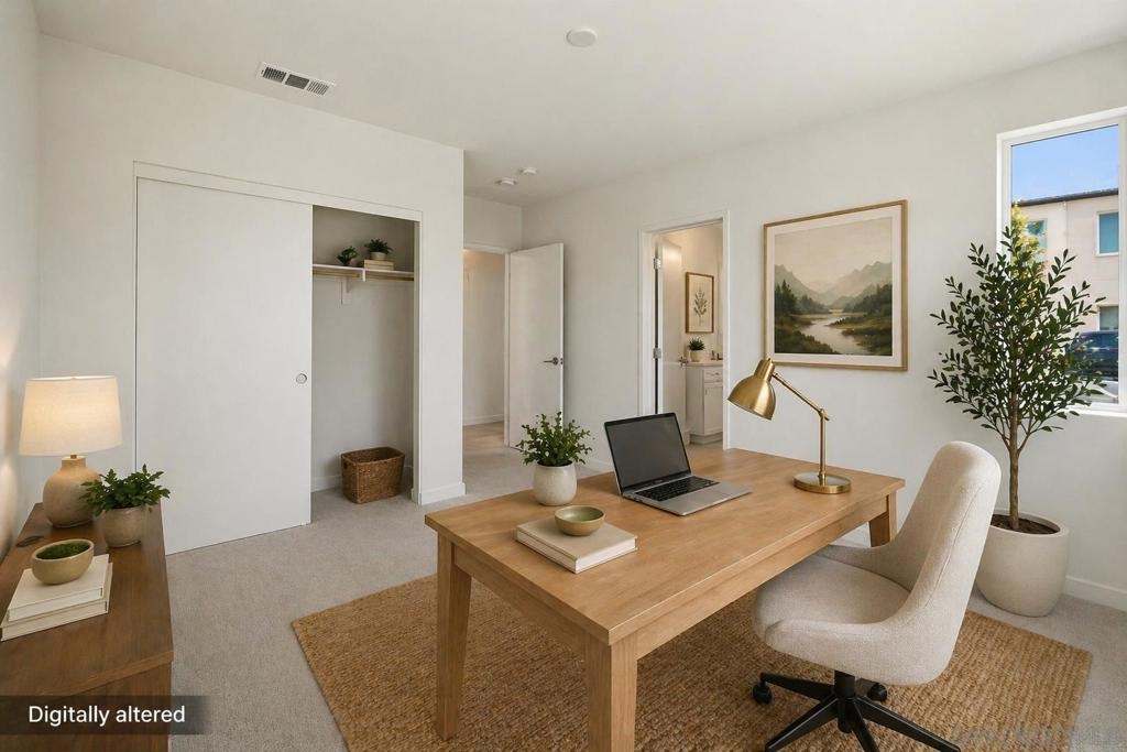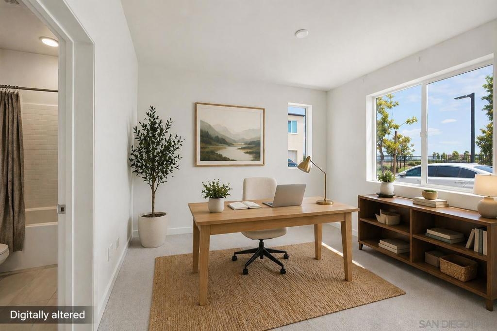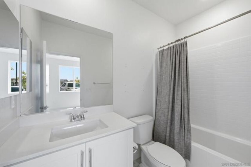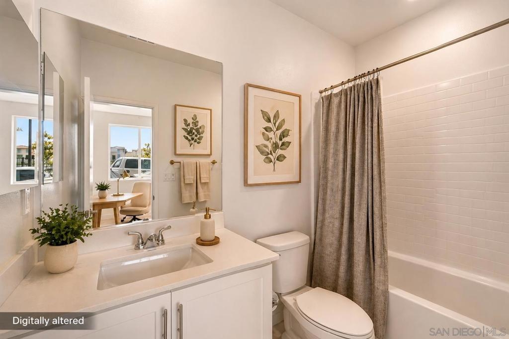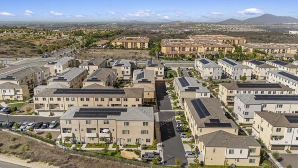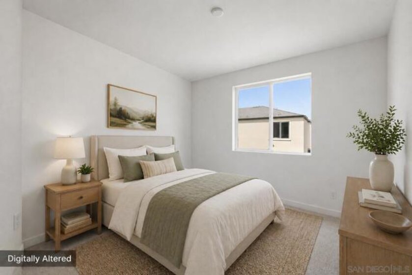 Built in 2024 with fully paid solar, this light-filled corner home in Agualuna offers 4 bedrooms, 3.5 bathrooms, and 1,875 sq ft of flexible living space designed to adapt to your lifestyle. A ground-floor bedroom with full bath provides ideal separation for guests, multi-generational living, a private office, or potential rental use. The main level features soaring ceilings, LVP flooring, and an open-concept layout that blends comfort and functionality. The modern kitchen showcases white cabinetry, quartz countertops, stainless steel appliances, and a striking blue backsplash that adds a bold touch. Step onto your private balcony for morning coffee or to unwind at the end of the day. Upstairs, the spacious primary suite offers a walk-in closet and en-suite bath, along with additional bedrooms and convenient upstairs laundry. As a corner unit, natural light fills every level, enhancing the bright and open feel throughout. Enjoy access to green spaces and a dog run, just minutes from CBX, the border, Imperial Beach, Silver Strand, Otay Valley Regional Park, and Sharp Chula Vista Medical Center. Quick access to the 905, 805, and SR-125 makes commuting effortless. Short sale opportunity, a rare chance to own a newer home with premium features at exceptional value.