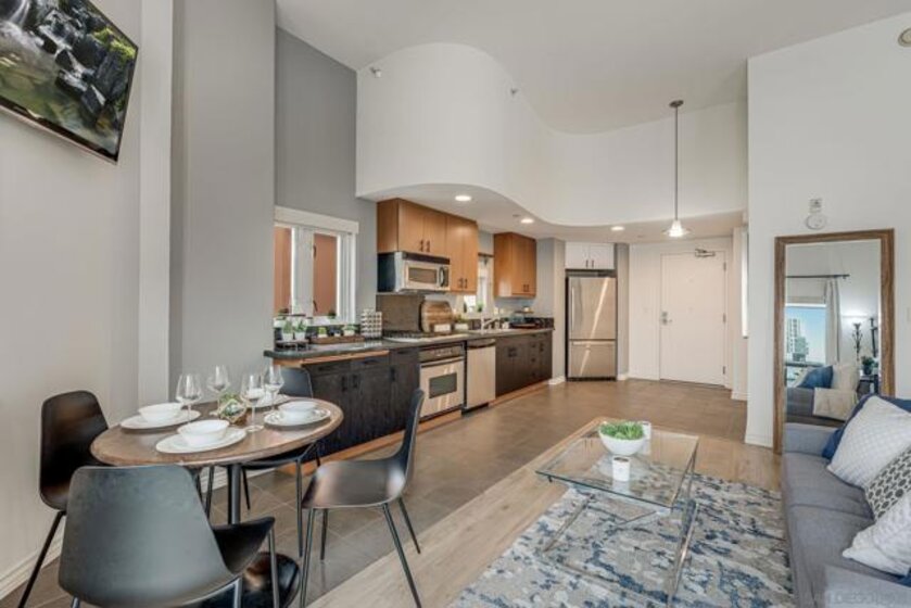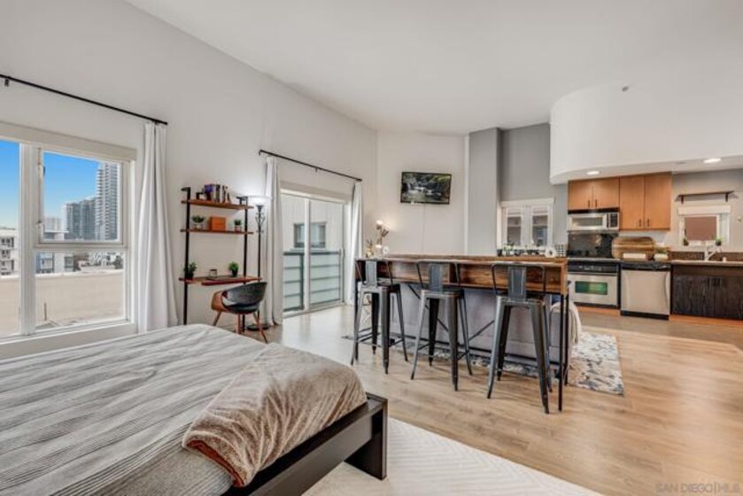 Seller is willing to help buyers with a rate buy-down or closing costs — making this opportunity even more attractive for savvy buyers! Welcome to Unit 809 at 550 15th Street — a rare top-floor, corner studio in the heart of San Diego’s East Village. This stylish and spacious residence offers the ultimate downtown lifestyle, complete with sweeping city views and a host of modern amenities. Key Features: Prime Location: Just blocks from Petco Park and the scenic San Diego Bay, you’ll be steps away from the Gaslamp Quarter’s buzzing nightlife, acclaimed restaurants, and cultural attractions. Spacious Studio Layout: Enjoy 725 sq ft of open-concept living with abundant natural light, no shared walls, and fresh coastal breezes — the perfect urban sanctuary. Modern Amenities: Features include in-unit laundry, central A/C, and a sleek kitchen with modern appliances. The building offers secure garage parking (1 assigned space), a full fitness center, and a beautifully landscaped courtyard with BBQs, fire pit, and outdoor dining areas. Spectacular Views: As a top-floor, west-facing corner unit, you’ll soak in unobstructed panoramic views of downtown and the vibrant Gaslamp Quarter — ideal for watching sunsets or city lights at night. Convenient Transit Access: Just a short stroll to the trolley station, providing seamless access to the greater San Diego area. Additional Details: Year Built: 2006 HOA Dues: $521/month List Price: $439,000