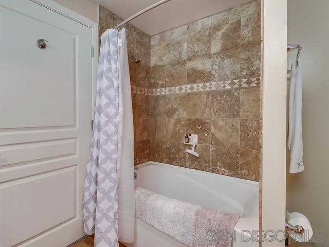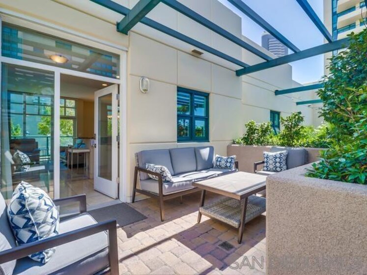 Ideal split bedroom floor plan, perfectly positioned in center of Marina District. Residence located on the same level as pool/spa w/ no one above you, only one neighbor to the side, office space below. Enjoy interior courtyard that features waterfalls & tropical landscaping for a relaxing resort-like feel. Take in city atmosphere on either of 2 patios, 1 large enough to entertain a group of 8. Travertine floors throughout, plus 1 parking space. Best of downtown at your door-step: Petco Park, Gaslamp Quarter, Seaport Village, Little Italy, Bay. Ideal split bedroom floor plan, perfectly positioned in the center of the Marina District. Residence is located on the same level as pool/spa and interior courtyard that features waterfalls and tropical landscaping for a relaxing resort-like feel. Take in the city atmosphere on either of your 2 patios, 1 being large enough to entertain. Distinctive Travertine floors throughout, plus 1 parking space (there is an abundance of guest parking) ! The best of downtown at your door-step: Petco Park, Gaslamp Quarter, Seaport Village, Little Italy, & Bay. Pool, Spa were recently re-plastered and new pool decking was installed.