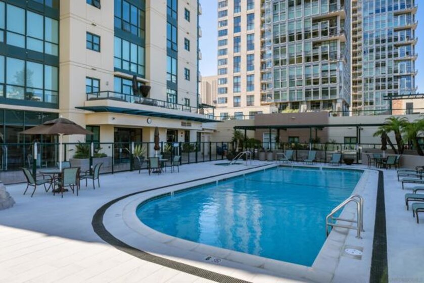 Located in Horizons NORTH Tower, in the heart of the Marina District, this bright south-facing unit is filled with abundant natural light and offers open-sky views with minimal obstructions. Beautifully updated, it features new flooring along with a modern kitchen and baths. The kitchen remodel included relocating the island to create a more open-concept layout, complemented by upgraded finishes and ample storage. Step outside to an expansive 250 sq. ft. entertaining deck, ideal for relaxing, dining, or hosting friends. Resort-style amenities include a pool, spa, fitness center, concierge, security, billiard and conference rooms, and guest parking. Just steps from the scenic Martin Luther King Jr. Promenade and Seaport Village, with an array of retailers at your doorstep and walking distance to top-rated restaurants, shopping, and a 24-hour Ralphs Market. Located in Horizons, in the heart of the Marina District, this bright south-facing unit is filled with abundant natural light and offers open-sky views with minimal obstructions. Beautifully updated, it features new flooring along with a modern kitchen and baths. The kitchen remodel included relocating the island to create a more open-concept layout, complemented by upgraded finishes and ample storage. Step outside to an expansive 250 sq. ft. entertaining deck, ideal for relaxing, dining, or hosting friends. Resort-style amenities include a pool, spa, fitness center, concierge, security, billiard and conference rooms, and guest parking. Just steps from the scenic Martin Luther King Jr. Promenade and Seaport Village, with an array of retailers at your doorstep and walking distance to top-rated restaurants, shopping, and a 24-hour Ralphs Market.