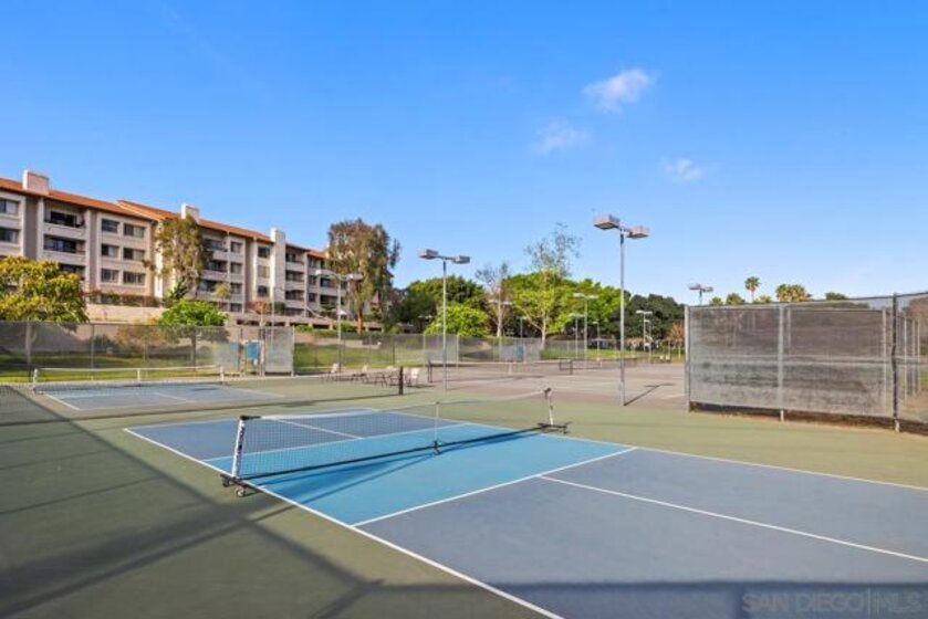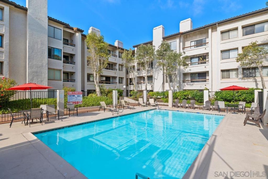 There’s a calm, comfortable feel the moment you walk in—natural light through the trees, a view toward the pool, and a space that immediately feels like home. The kitchen and dining area sit at the center, ideal for casual dinners and relaxed evenings. Wood-style flooring adds warmth, while bright white cabinetry keeps things light and fresh. The balcony extends the living space—perfect for morning coffee or unwinding at the end of the day. The primary bedroom is generously sized with an updated shower and walk-in closet. Soft natural light and tree-lined views, create a more private retreat. Interior laundry and air conditioning add everyday convenience. Located in the desirable Presidio Place community, known for its open space and resort-style amenities including pools, spa, sauna, tennis and pickleball courts, ponds, garden areas, and walking paths. Minutes to USD, the beaches, Fashion Valley, the trolley, and major freeways. There’s a calm, comfortable feel the moment you walk in—natural light through the trees, a view toward the pool, and a space that immediately feels like home. The kitchen and dining area sit at the center of it all—ideal for casual dinners, gatherings, and relaxed evenings. Wood-style flooring adds warmth, while bright white cabinetry keeps the space feeling light and fresh. The balcony extends the living area, perfect for morning coffee or unwinding at the end of the day. The primary bedroom is generously sized with an updated shower and a walk-in closet plus secondary closet for extra storage. Soft natural light and tree-lined views create a more private, relaxed retreat. Interior laundry and air conditioning add everyday convenience. Located in the highly desirable Presidio Place community, known for its open space and resort-style amenities including multiple pools, spa, sauna, tennis and pickleball courts, ponds, garden areas, and walking paths. An additional storage closet and bike storage add to convenience. Just minutes to USD, the beaches, Fashion Valley, the trolley, and major freeways. A well-located option for first-time buyers, downsizers, or those looking for a low-maintenance San Diego base. Presidio Place offers 24/7 guard-gated security, with HOA dues that include water and trash