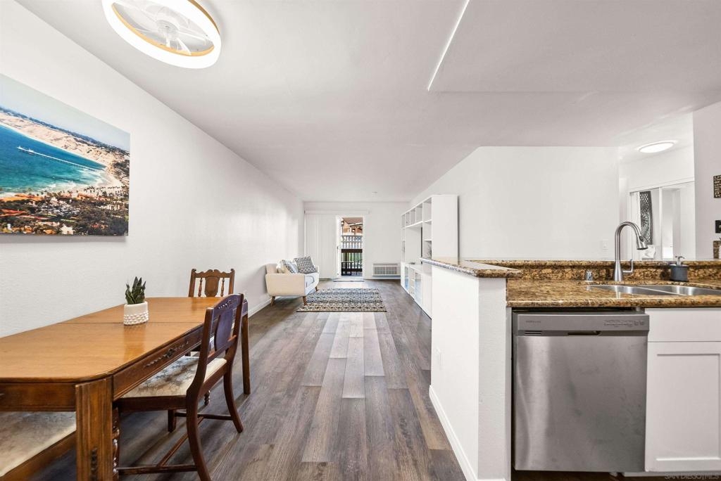 An exceptional value in the highly desirable Mission Verde community of Mission Valley, this move-in-ready ground-level 1-bedroom, 1-bath residence offers comfort, convenience, and thoughtful updates in a prime location. Fresh interior paint and an updated bathroom vanity and fixtures create a clean, modern feel, while durable luxury vinyl plank flooring flows throughout the home. The spacious living area opens directly to a private patio overlooking a peaceful common area—ideal for morning coffee or relaxed outdoor living. The kitchen provides generous cabinetry and counter space, and the bedroom is complemented by additional hallway closets, offering excellent storage rarely found in homes of this size. Additional features include a newer air conditioning unit, dual-pane windows and sliding door, assigned parking, and a dedicated storage closet. Mission Verde is a well-maintained, pet-friendly community with resort-style amenities, including a pool, spa, fitness center/clubhouse, tennis and basketball courts, and a large community laundry facility. Ideally situated near Snapdragon Stadium, shopping, dining, public transportation, and major freeway access, this home offers easy access to everything Mission Valley has to offer. VA and FHA approved, making it an excellent opportunity for both owner-occupants and investors.