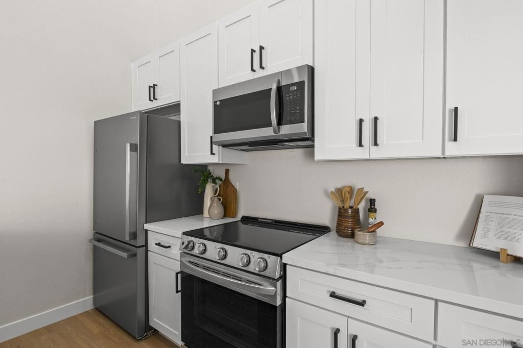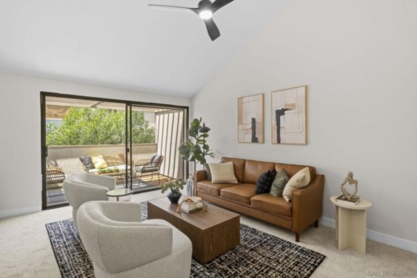 VA Approved! Beautifully remodeled upper-unit condo in the heart of University City with no neighbors above and vast vaulted ceilings throughout. This stylish, move-in ready home showcases a brand-new kitchen with white shaker cabinetry, quartz countertops, new appliances, and a modern backsplash. Thoughtful upgrades include new windows, a new sliding door, and new lighting and fixtures throughout. The bathroom has been fully refreshed with a new vanity, quartz counters, and a custom tile shower. The spacious bedroom is complemented by multiple closets for exceptional storage. Garage parking adds convenience, and the central location puts you just minutes from shopping, restaurants, major freeways, and all that University City has to offer. Enjoy the pool and of being next to restaurants and shopping.