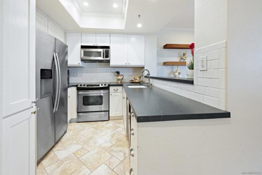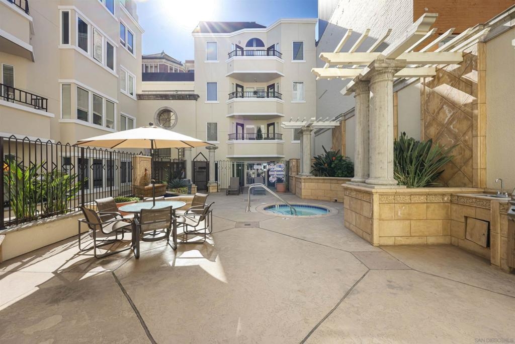 Garden view condo in the Heart of Marina District, Downtown San Diego. Welcome to your own slice of urban paradise! This impeccably designed one-bedroom, one-bathroom condo offers a harmonious blend of modern elegance and city convenience, offering 735 square feet of thoughtfully crafted living space. Nestled in the prestigious Marina District of downtown San Diego, this condo offers a lifestyle that combines luxury, comfort, and unparalleled access to the vibrant energy of the city. This updated condo features custom paint, built ins, porcelain tile floors throughout, plantation shutters, granite surfaces, stainless-steel appliances, and a large primary suite with an organized, walk-in closet and spacious bathroom. One car underground garage spot included.