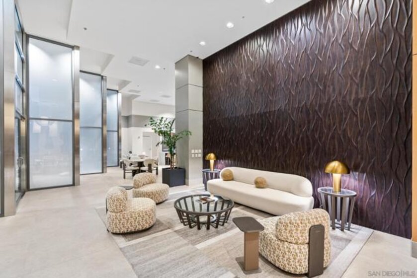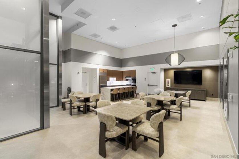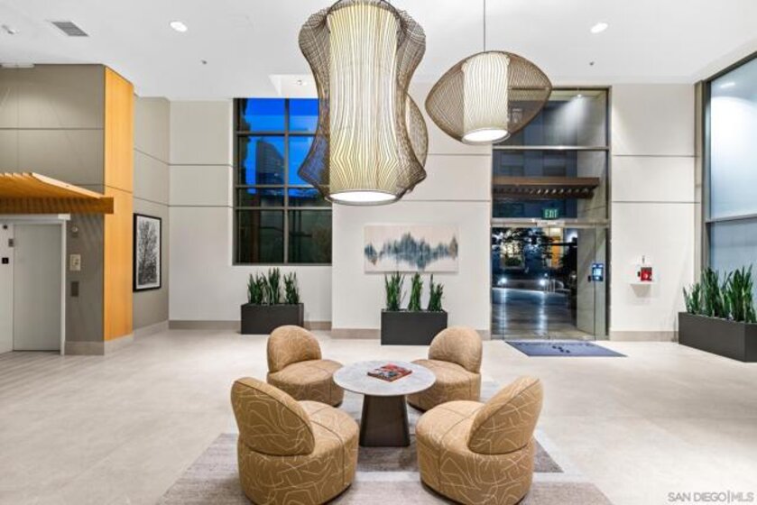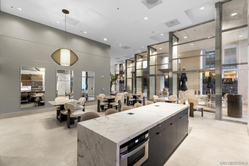 Come home to a breathtaking Downtown skyline and water views of San Diego Harbor! This highly upgraded condo in the heart of the Marina district at Renaissance Tower offers elegance, versatility, and the convenience of living right in the heart of it all. This oversized 1-bedroom residence features an open floor plan and a private balcony, offering dramatic, panoramic views. The spacious living and dining area includes a Murphy bed, providing flexibility for guests or the option to easily convert the space back into a 2-bedroom layout. The gourmet kitchen with island is ideal for hosting in the open concept living and dining room. The primary suite is a true retreat with a spa-like marble bath that serves as a striking statement piece. The suite also includes a walk-in closet and breathtaking views to wake up to every morning. Renaissance Tower offers an array of resort-style amenities, including 24-hour gated security, a front desk concierge, an event space, and fresh updates to the street-level lobby, community lounges, pool, spa, and BBQ areas. You will love being just a short stroll to restaurants, the Gaslamp, Rady’s Shell, Petco Park, Little Italy, and all of the amazing year-round events!