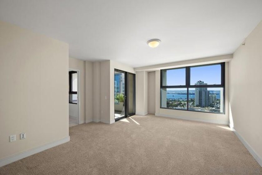 Don’t miss this one-of-a-kind, northwest corner floor plan in the south tower of Renaissance! Views are yours in every room; from sparkling city lights to the blue waters of the bay spanning beyond Point Loma! Beautifully upgraded, featuring a dual primary layout, fireplace in the living area, wood floors, and a generous amount of storage provided by the built-ins in nearly every room. The kitchen boasts granite counters, a large center island, high-end appliances by Sub-Zero and GE Monogram, plus an office space and breakfast area. The large primary suite offers its own private patio, a huge walk-in closet with a customizable system by Elfa and a fold down ironing board to boot. The en-suite bath features beautiful marble surrounds, a jetted spa tub, dual vanity, and separate walk-in shower. Guests will love the second bedroom which feels like its own private wing with en-suite bath and a spacious walk-in closet. This residence also includes a storage unit (level 1) and two separate parking spaces (level 2). The “refreshed” Renaissance common areas are sure to impress highlighting a new state of the art main lobby near completion! With staffed lobbies, 24/7 security, pool and spa, barbecues, seating areas, an outdoor fireplace and firepit, a well-equipped fitness center, and meeting room, the development has it all. Located in the highly desirable Marina District, street level at the Renaissance features, a myriad of retailers just an elevator ride away, including Wells Fargo, tanning salon, dry cleaners, Postal Annex, Vitality Tap for all your fresh juices & vitamins, and a soon to be coffee/sandwich shop. Enjoy easy walking access to train and trolley lines, excellent restaurants, shopping, and a Ralphs Signature Market across the street.
