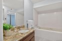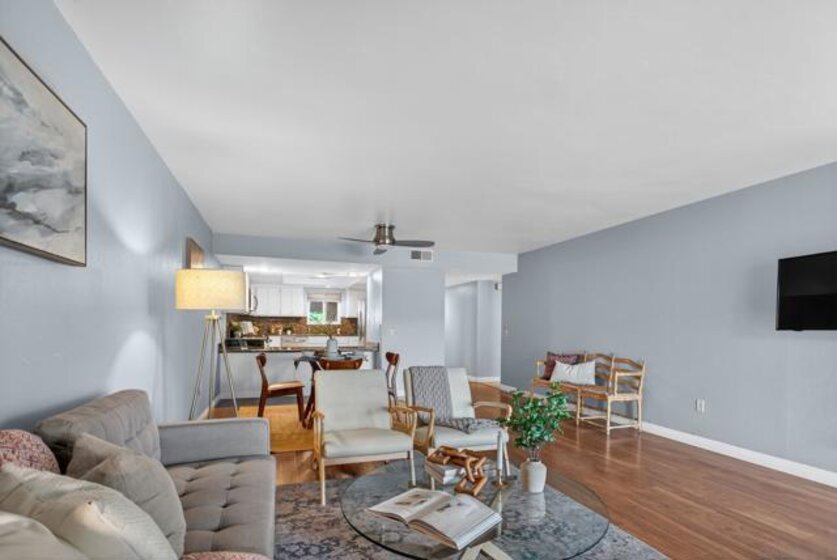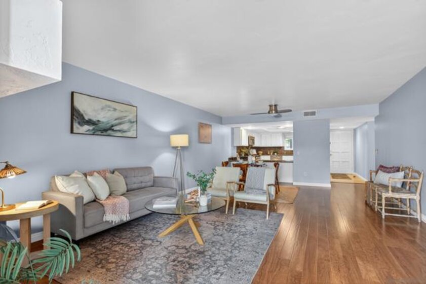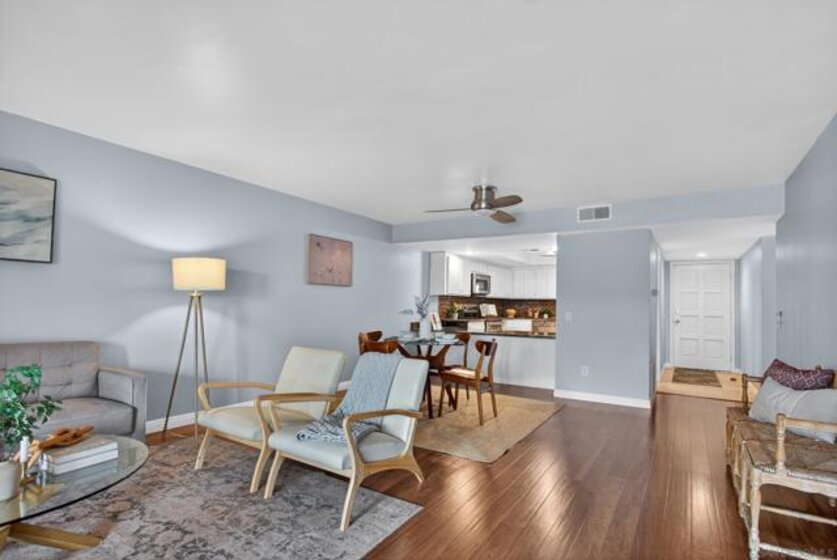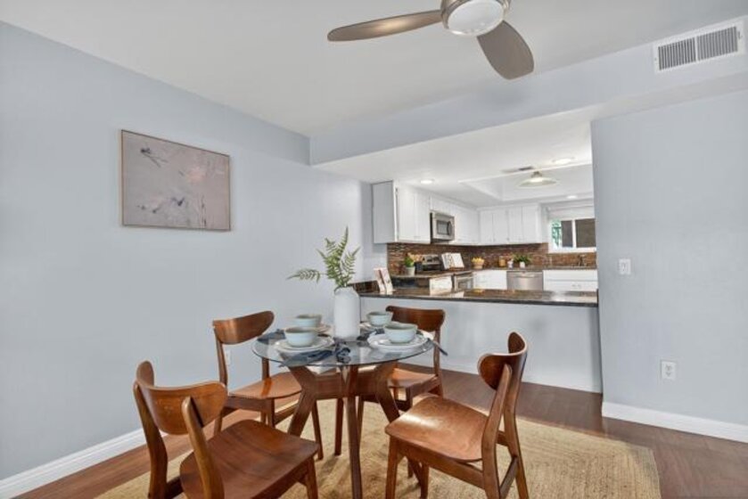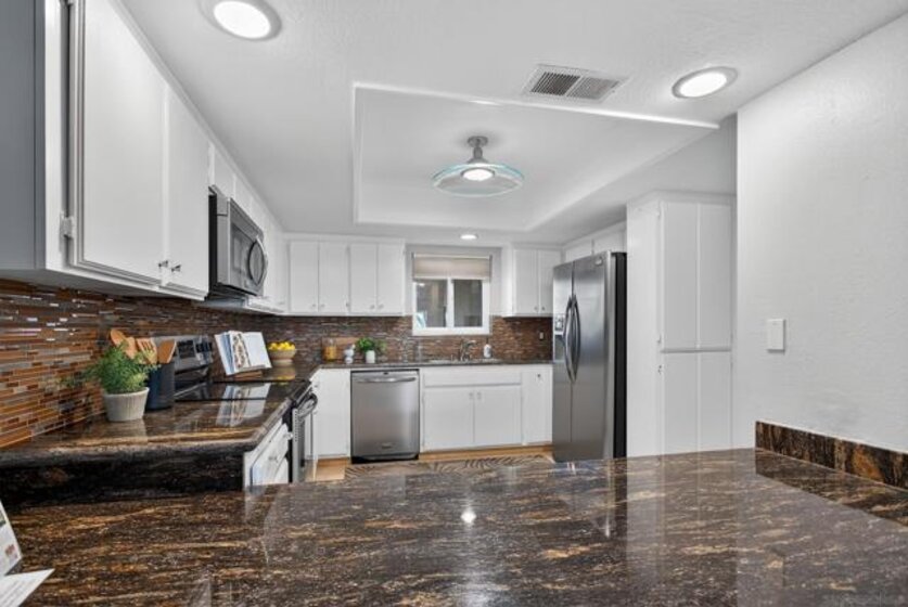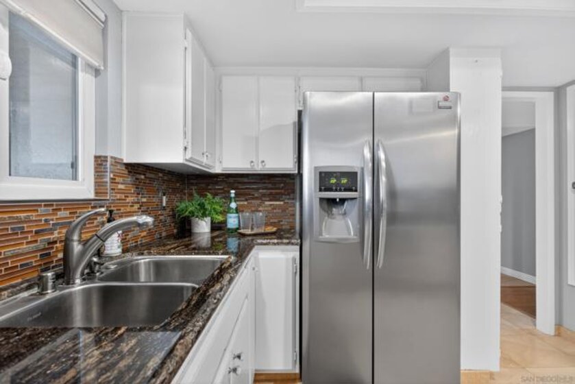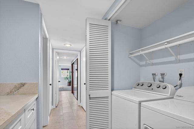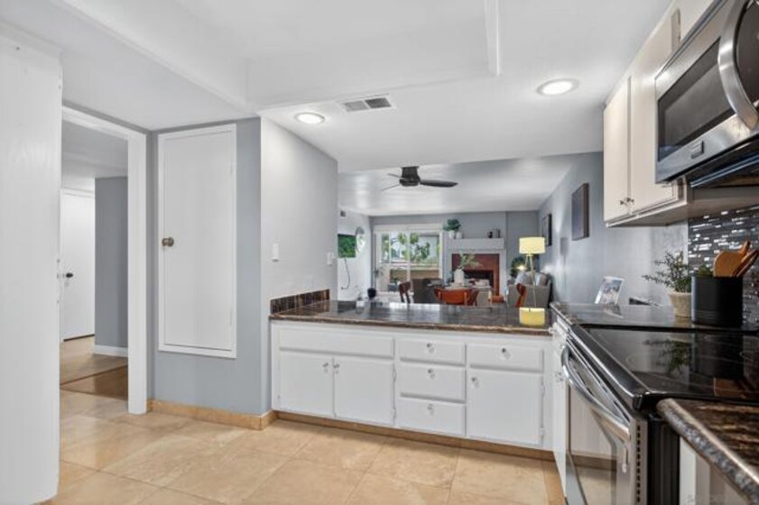 A captivating property on the market! This spacious, single-level ground-floor home offers an open floor plan, creating a seamless and inviting atmosphere. It features two generous bedrooms and two full bathrooms. The kitchen is equipped with Frigidaire Gallery stainless steel appliances, plenty of cabinet space, and well-maintained countertops. You'll find brand new tile throughout the hallway and bathrooms, along with a brand new hallway cabinet and new countertop in the hallway. Additionally, there are new cabinets in one of the bathrooms. The home also includes a full-size washer and dryer, a roomy patio, and much more. Additionally, it comes with one garage parking spot and storage, as well as a second reserved uncovered parking spot. WATER & TRASH included in monthly HOA fees.