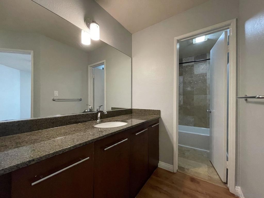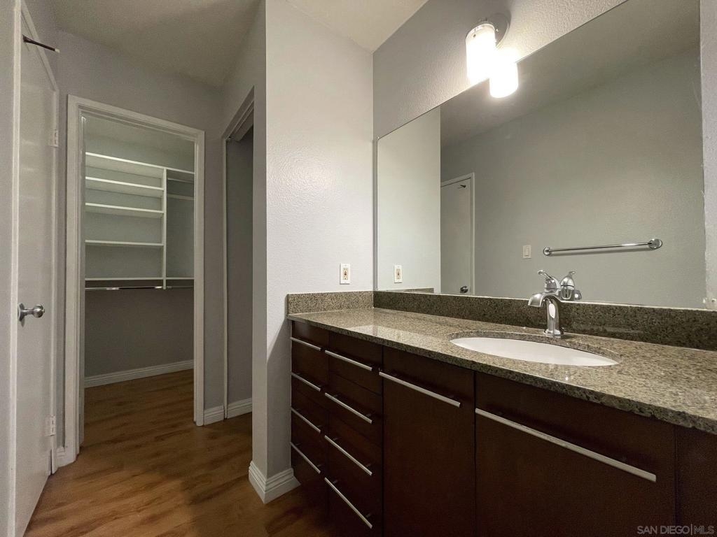 Located in the in the highly desired Verano community in the heart of UTC, this largest 2b/2b ground level unit is move-in ready! The largest 1,037 sq ft floor plan features granite counter top, stainless steel appliances, dual pane windows, laminate floors throughout, freshly painted interior. Dual master bedrooms are retreats with large walk-in closets and upgraded bathrooms. Includes full size in-unit washer and dryer and ample storage closet on the large patio. Water and trash are included in HOA fees. Two assigned underground parking spots in gated garage and one additional parking spot with permit. Resort style amenities includes two pools and hot tubs, cyber café, 24/7 gym, BBQ area, and walking trails in a park-like setting. This vibrant UTC/La Jolla location is close to UCSD, highways, shopping, restaurants, theatres and famous La Jolla beaches just a short drive away!