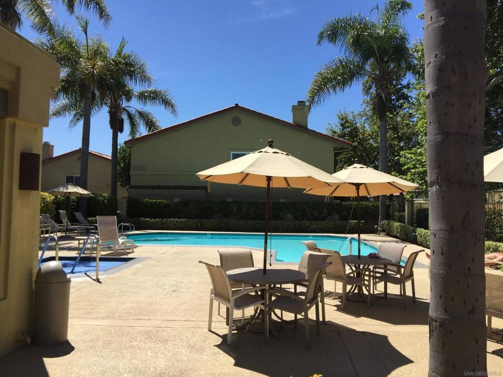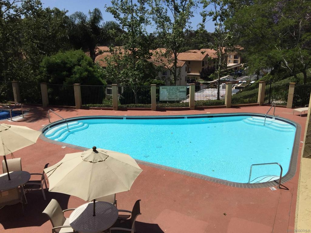 Upper floor corner unit 1Bed/1Bath condo in Verano UTC is for sale now. This charming unit features newly installed AC, laminated flooring from living room to hallway, newer stackable washer and dryer, energy efficient windows, patio, ample storage spaces and comes with 2 parking spaces. Community features 2 pools, fitness center, business center, bbq area and more. Close to shopping, dining and great schools. Convenient access to freeway I-5, 805 and 52. Do not miss this opportunity!