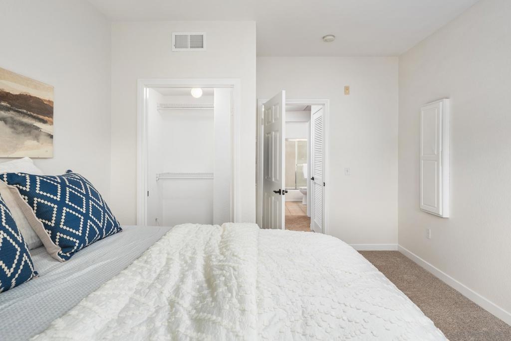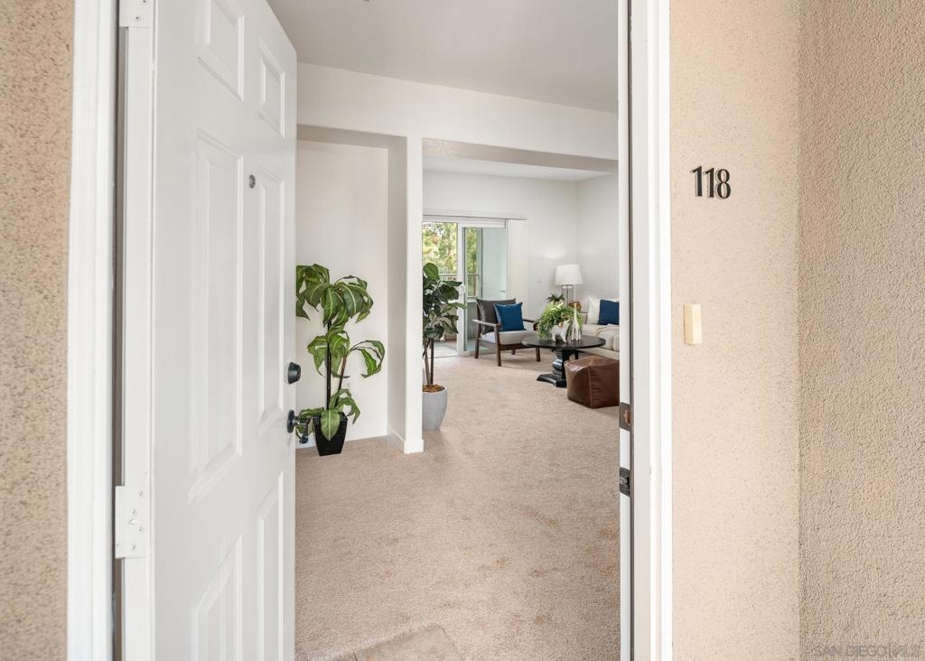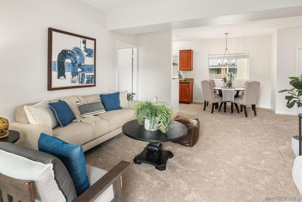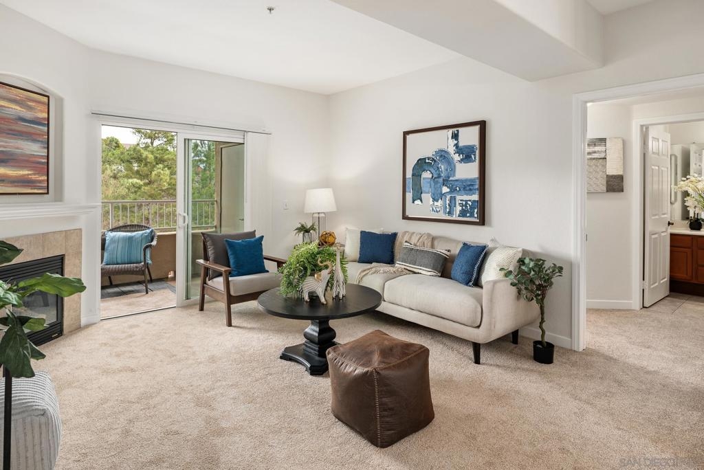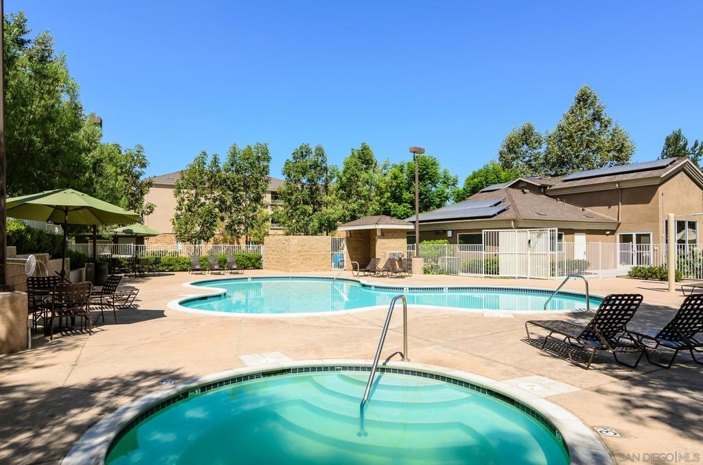 Top floor, turn-key, light & bright, condominium. Brand new carpet & paint throughout. Kitchen features granite counters & a gas range. Primary bedroom w/ walk-in closet & large, attached bathroom. Sizable 2nd bedroom is on the opposite side of the living room. In-unit laundry. Solar panels for reduced SDGE bills. 2 assigned parking spaces. Rancho Mission Trails offers a beautiful pool, spa, clubhouse & BBQ area. On-site property manager. Blocks from Mission Trails Regional Park. A great value and a must see!