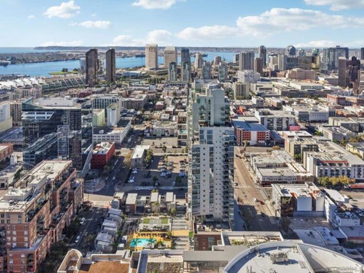 Experience elevated urban living in this beautifully updated residence at The Mark, one of East Village’s premier luxury towers. Ideally located just steps from Petco Park yet positioned away from noise and traffic, this home offers the perfect balance of excitement and comfort. The Gaslamp Quarter, Little Italy, and San Diego’s waterfront are all just moments away, placing the best of downtown at your doorstep. Inside, the open floor plan showcases sweeping city views. The spacious living area includes a built-in media console and a flexible dining space that can also serve as a workspace—perfect for taking in the skyline while you dine or work. A covered balcony extends the living area outdoors with expansive city and peek-a-boo bay views. The generous bedroom offers room for a desk and features a walk-in closet with a custom California Closet system. The oversized spa-like bathroom is accessible from both the bedroom and living area. The open kitchen is ideal for entertaining, complete with stone countertops, Studio Becker soft-close cabinetry, stainless steel appliances, breakfast seating, and abundant storage. Notable upgrades include an HVAC system with UV filtration, Ecobee thermostat, newer countertops, newer refrigerator, and full-size LG front-loading washer and dryer. The Mark offers exceptional amenities - concierge, newly updated saltwater pool/spa, upgraded courtyard with pizza oven, BBQs, lounge areas, state-of-the-art fitness center, and conference room. VA approved, this home offers resort-style living in the heart of Downtown San Diego.