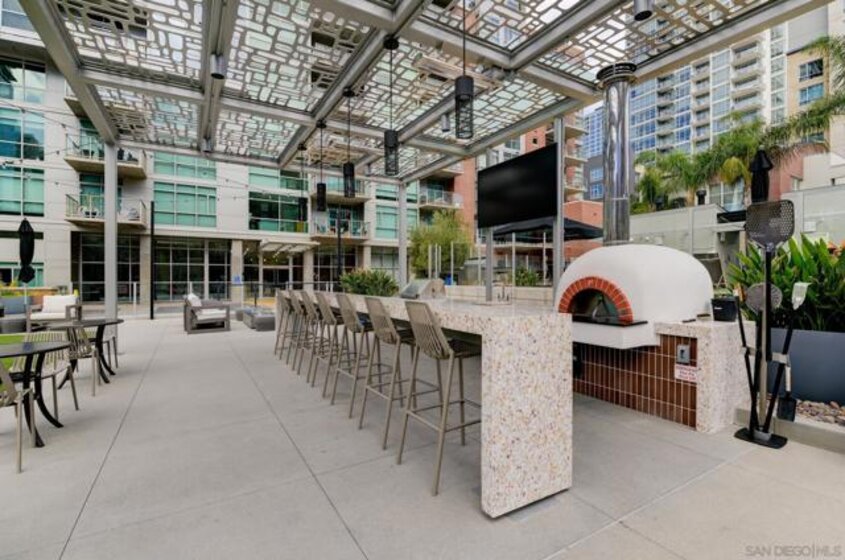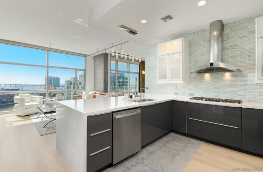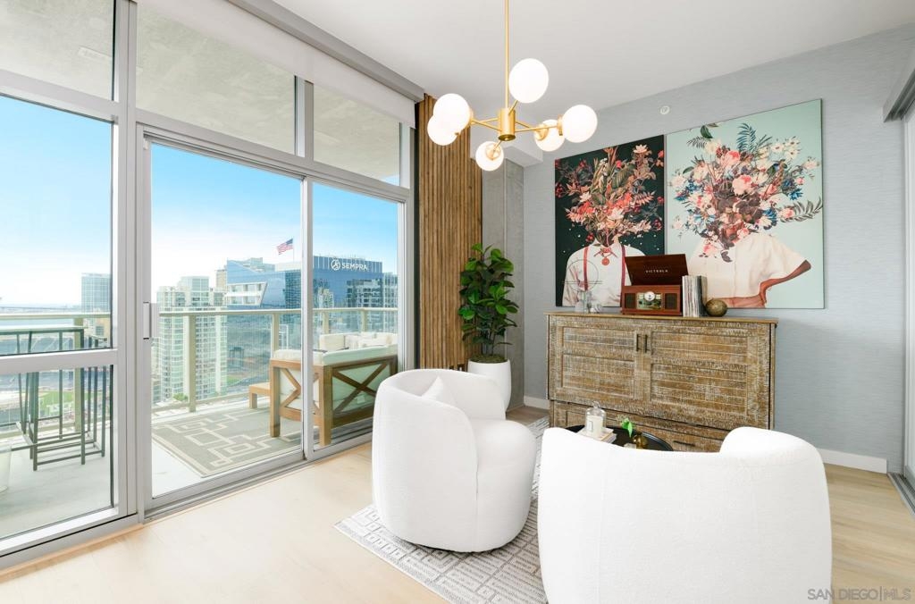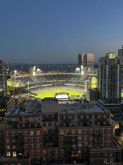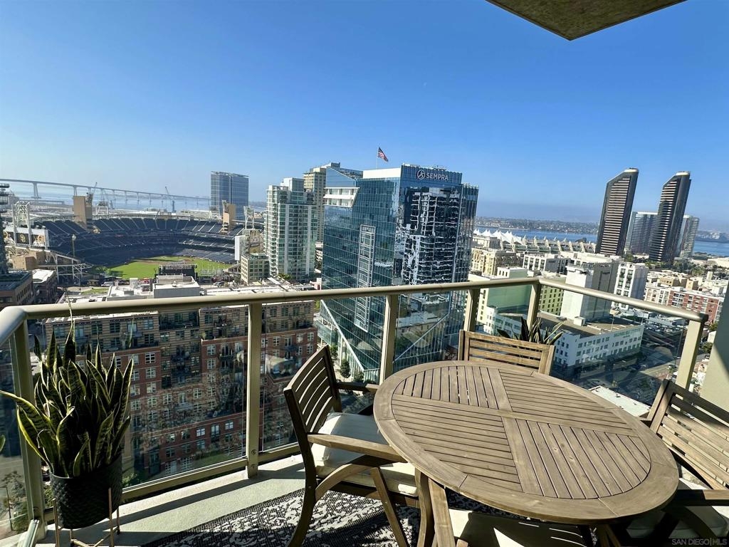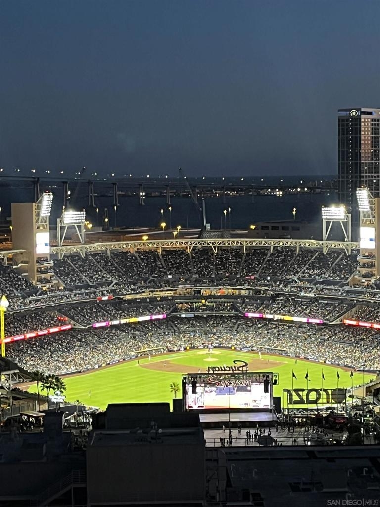 Experience extraordinary panoramic views from this exceptional residence, offering sweeping vistas of Petco Park, Coronado, the Bay, Point Loma and Ocean placing San Diego’s iconic skyline at center stage. Two private balconies provide the perfect setting to enjoy sunrise coffee or evening sunsets framed by the city lights or enjoy watching baseball at Petco Park and live shows at Gallagher Square. Designer upgrades incl. brand new $30K luxury laminate wide plank floors, motorized shades, renovated bathrooms & a beautifully renovated Chef's kitchen with sleek cabinetry, stainless steel appliances & a contemporary backsplash. New microwave & dishwasher. The open-concept design seamlessly connects the living, dining & kitchen spaces, for entertaining & everyday living with option to easily convert dining space into a second bedroom where closet has been thoughtfully installed already. Primary suite with balcony access, blackout motorized shades & spacious walk-in closet. Two secured parking spaces & storage unit add convenience and peace of mind, while resort-style amenities—including a lap pool, spa, fitness center, full kitchen, fire pits and pizza oven. Multiple lounge areas and four dedicated barbecue stations. Ideally located with immediate access to the vibrant Gaslamp Quarter, Little Italy dining scene, The Rady Shell waterfront concert & event venue and this residence also places baseball enthusiasts moments from the action at Petco Park. A rare opportunity to own a view-driven urban retreat combining modern sophistication with premier lifestyle access. Rising 33 stories above the vibrant East Village, The Mark defines sophisticated urban living in downtown San Diego. Surrounded by acclaimed dining, cafés, entertainment venues, shopping, and major sporting events, residents enjoy an unmatched walkable lifestyle just minutes from the bay. The building’s striking glass-and-metal architecture is complemented by 11 distinctive brick townhomes, creating a bold yet refined presence. There is an expansive outdoor retreat featuring a lap pool and spa, fully furnished terrace with outdoor kitchen, fire pits, pizza oven, multiple lounge areas, four barbecue stations, and outdoor showers with private restrooms. Additional amenities include a state of the art fitness center and conference room with Wi-Fi. It It has a private loading dock, and service elevator ensuring convenience for extra large pieces of furniture. All offered with remarkably low HOA fees—an exceptional opportunity for luxury downtown living.