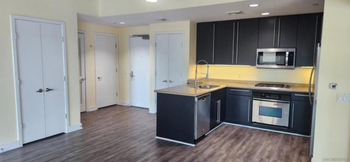 This beautiful, spacious and light-filled condo is located in the very walkable neighborhood of Cortez Hill, conveniently located on a hill in the northeast area of downtown with jacaranda lined streets, in the highly sought after Cortez Blu building! Cortez Hill is located within walking distance of Balboa Park, south of Banker's Hill and east of Little Italy. Enjoy the city views from your private balcony or through the floor to ceiling windows in every room. There are newer, beautiful luxury vinyl tile floors throughout the main areas of the condo with carpet in the large master bedroom and second bedroom. The soaring cement ceilings and expansive windows compliment the gourmet kitchen with newer appliances and a large pantry. The kitchen flows freely into the expansive and open living spaces. The master bedroom has a large walk-in closet, en suite bathroom with dual vanities, a luxurious soaking tub as well as a separate shower. The second bedroom is a nice size with large windows and there is a second full bathroom close by, as well as a full size washer and dryer. The concrete ceilings and floors also provide a very quiet space for you to enjoy. There is one dedicated parking space, plus, for residents of Cortez Hill, additional permitted street parking is available for a $15 annual fee! Cortez Hill is a compact downtown neighborhood and is home to family-friendly restaurants, hotels and condo buildings. including the landmark El Cortez, a 1927 grand former hotel. St Joseph Cathedral dates from 1875 and features Mission Revival-style architecture. Dotted with benches and whimsical birdhouses, Tweet Street Park is popular for strolls, while the sprawling and beautiful Balboa Park with its numerous museums and other attractions lies just to the north.