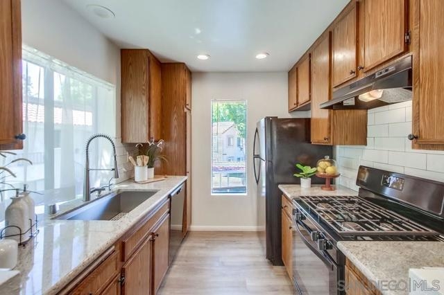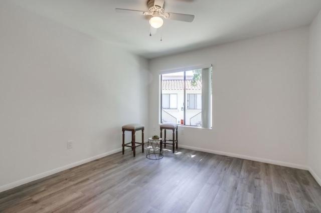 Motivated Sellers! Centrally located and move-in ready, this 2 bed, 2 bath upper-level condo offers 866 sq ft of comfortable living in the highly desirable Mira Mesa community. The kitchen features granite countertops, a subway tile backsplash, modern cabinetry, and a 4-burner gas range. A covered balcony with a storage closet includes full-size washer/dryer hook-ups for added convenience. Enjoy a quiet, well-maintained complex with a community pool and spa, assigned covered parking just steps from your door, and plenty of guest parking. Walk to nearby parks, schools, and shopping centers—it's a practical and convenient location. Ideal for first-time buyers, investors, or anyone seeking low-maintenance living in a central San Diego neighborhood.