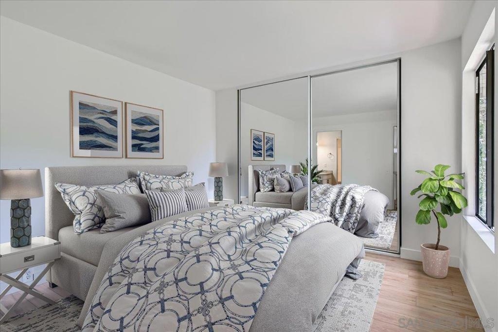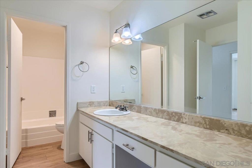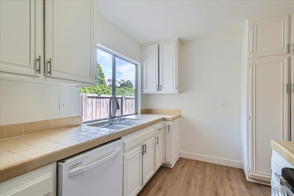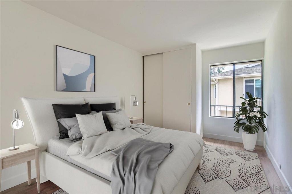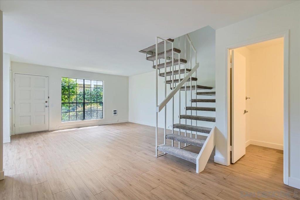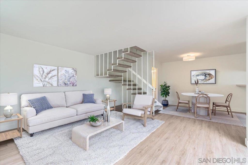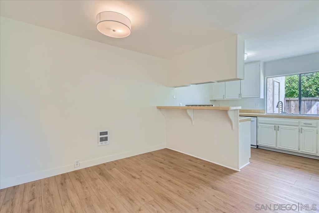 3 bedroom 2 bath Townhome in highly desirable Playmor La Jolla! Superb quiet and peaceful location, end unit with no one above or below. Move in ready with many upgrades including new wide plank vinyl flooring throughout and new swiss coffee white interior paint. New modern and sleek drum shaped chandeliers installed. New wall heating units installed throughout. Includes a charming patio to relax and have your morning coffee. Laundry room with full size washer and dryer included. 2 assigned parking spaces. Playmor La Jolla includes a pool and jacuzzi. Central location near La Jolla beaches, Westfield UTC mall, Tech companies, UCSD and I-5. Don't miss out on this gem!