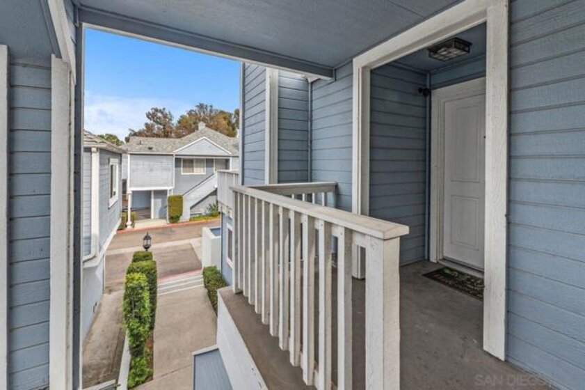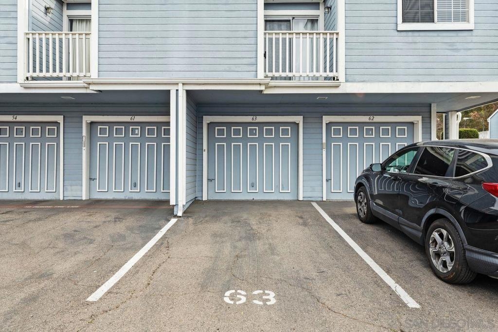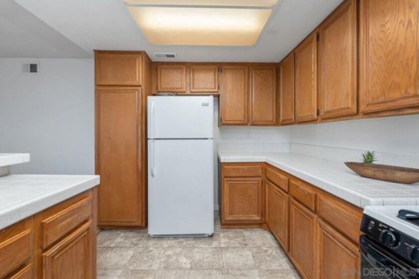 Welcome to Canyon Colony. This quiet, clean condo is ready for you to move in and enjoy. Features include: full-sized washer/dryer in unit, 1-car garage + 1 assigned parking space., A/C, fireplace, 2 balconies, and 3 patio doors. The kitchen has abundant storage w 22 cabinets (12 upper and 10 lower), 12 drawers, & a pantry cabinet. The dining room has space for a buffet, table, and bar stools at the snack bar. The back faces trees and offers a serene, natural atmosphere. New homeowners can refresh it a little or a lot, update it their way, and keep it as a future rental. Investors don't have to do anything. Last but not least, the pool and hot tub are a San Diego must-have. VA and FHA approved. Some images are AI virtually staged.