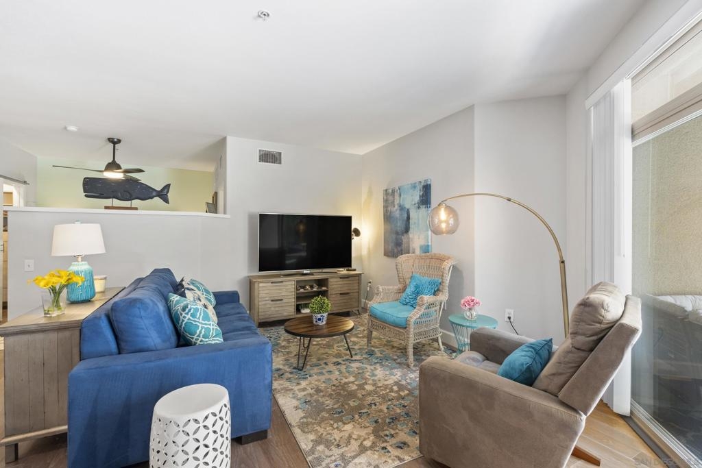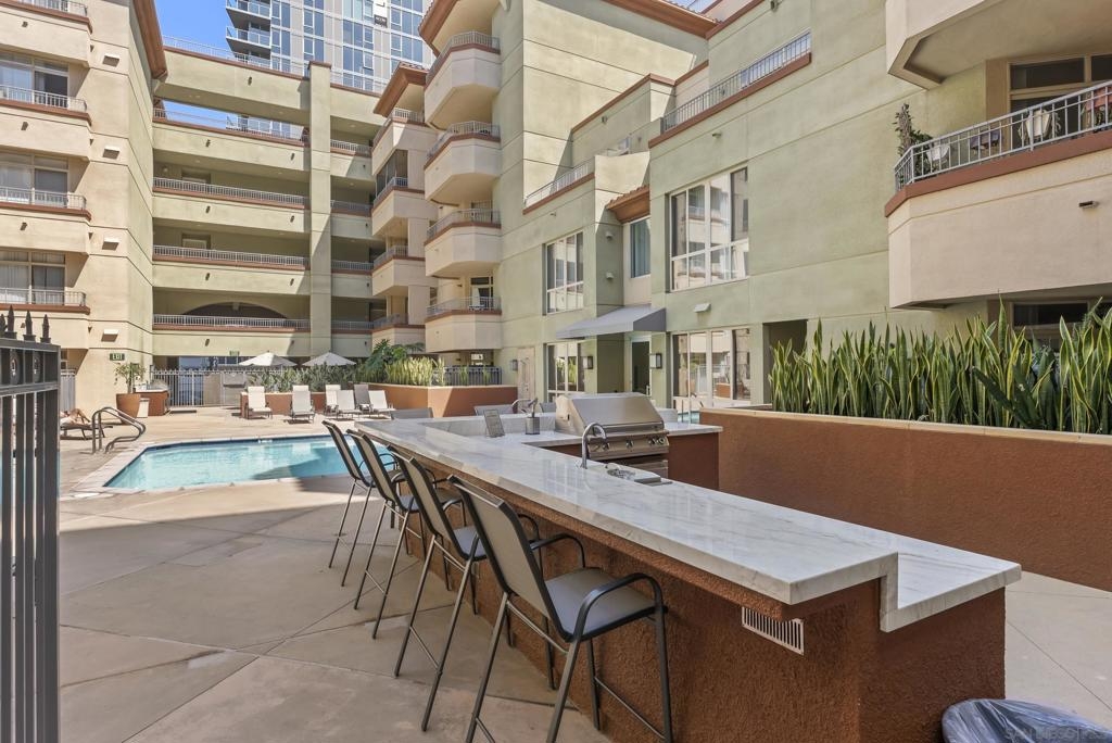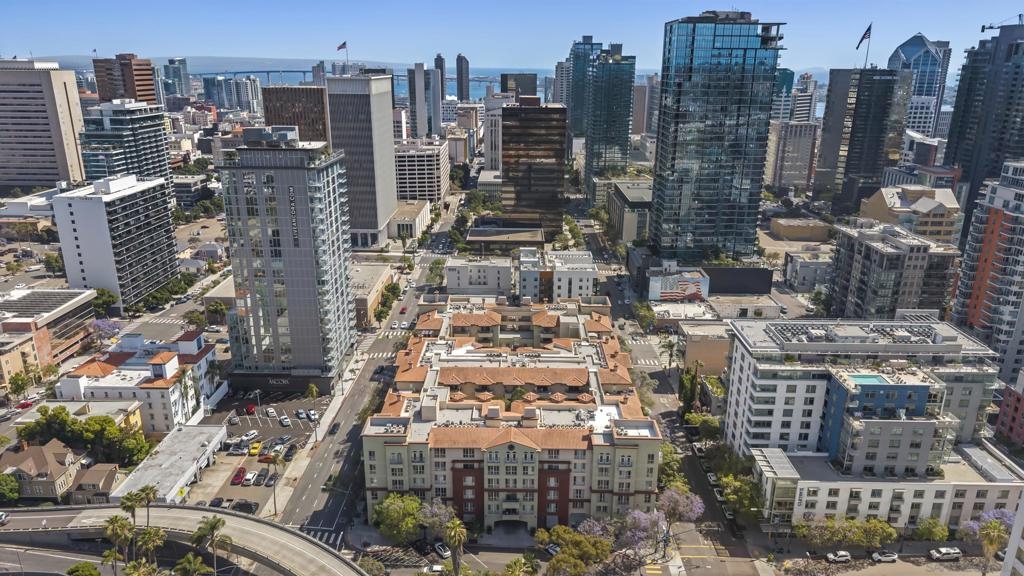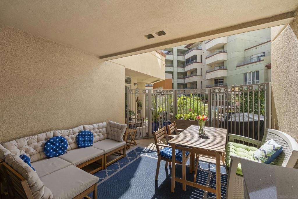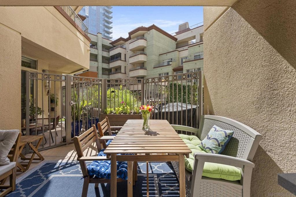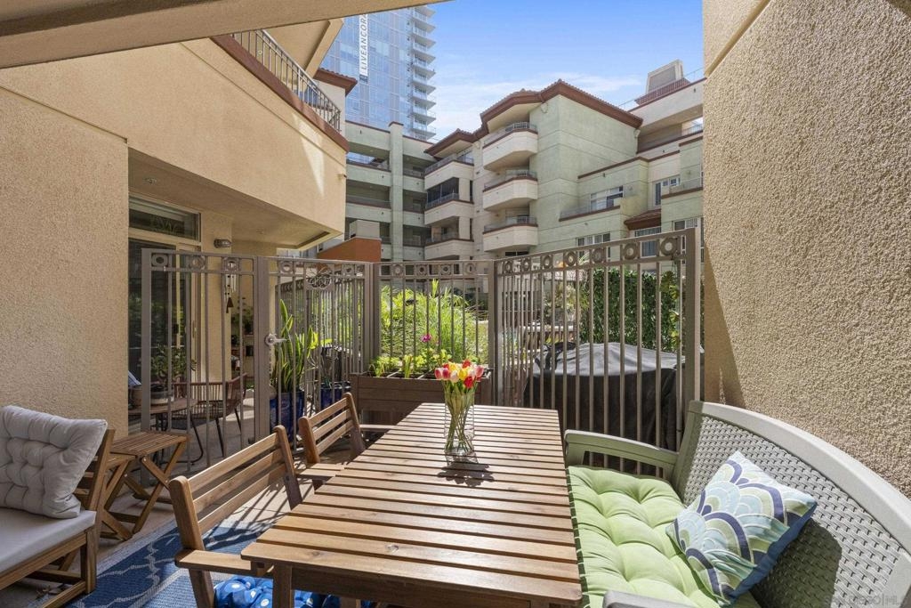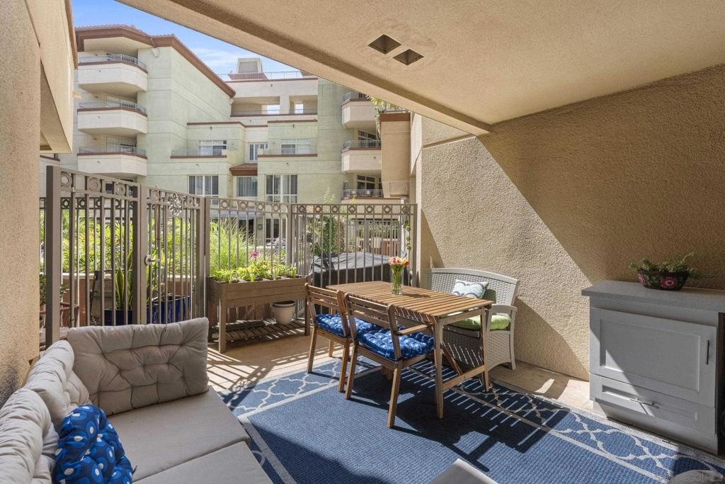 Live the best of Little Italy in this beautifully upgraded, fully furnished 1-bedroom residence at Piazza Palermo. Designed for effortless indoor/outdoor living, this home features one of the largest private patios in the building (4 patio sizes total)—a rare and highly sought-after feature that significantly enhances livability and value. Inside, the light-filled open layout showcases modern finishes, including quartz countertops, stainless steel appliances, induction oven, Fisher & Paykel dishwasher, and newer 2024 refrigerator, washer, and dryer. The seamless flow to the outdoor space creates an exceptional extension of the living area—an increasingly rare offering in downtown San Diego condos. The generous bedroom offers flexibility for both relaxation and work-from-home needs, while the turnkey, fully furnished design presents a compelling opportunity for a primary residence, second home, or investment. Located in the heart of Little Italy, you’re just moments from top restaurants, cafes, the farmers market, waterfront parks, and downtown attractions—while enjoying a quieter residential setting with convenient access to major freeways and employment centers. A rare opportunity to own a move-in ready residence with exceptional outdoor space in one of downtown San Diego’s most desirable and walkable neighborhoods—offering a unique combination of lifestyle, functionality, and long-term value.